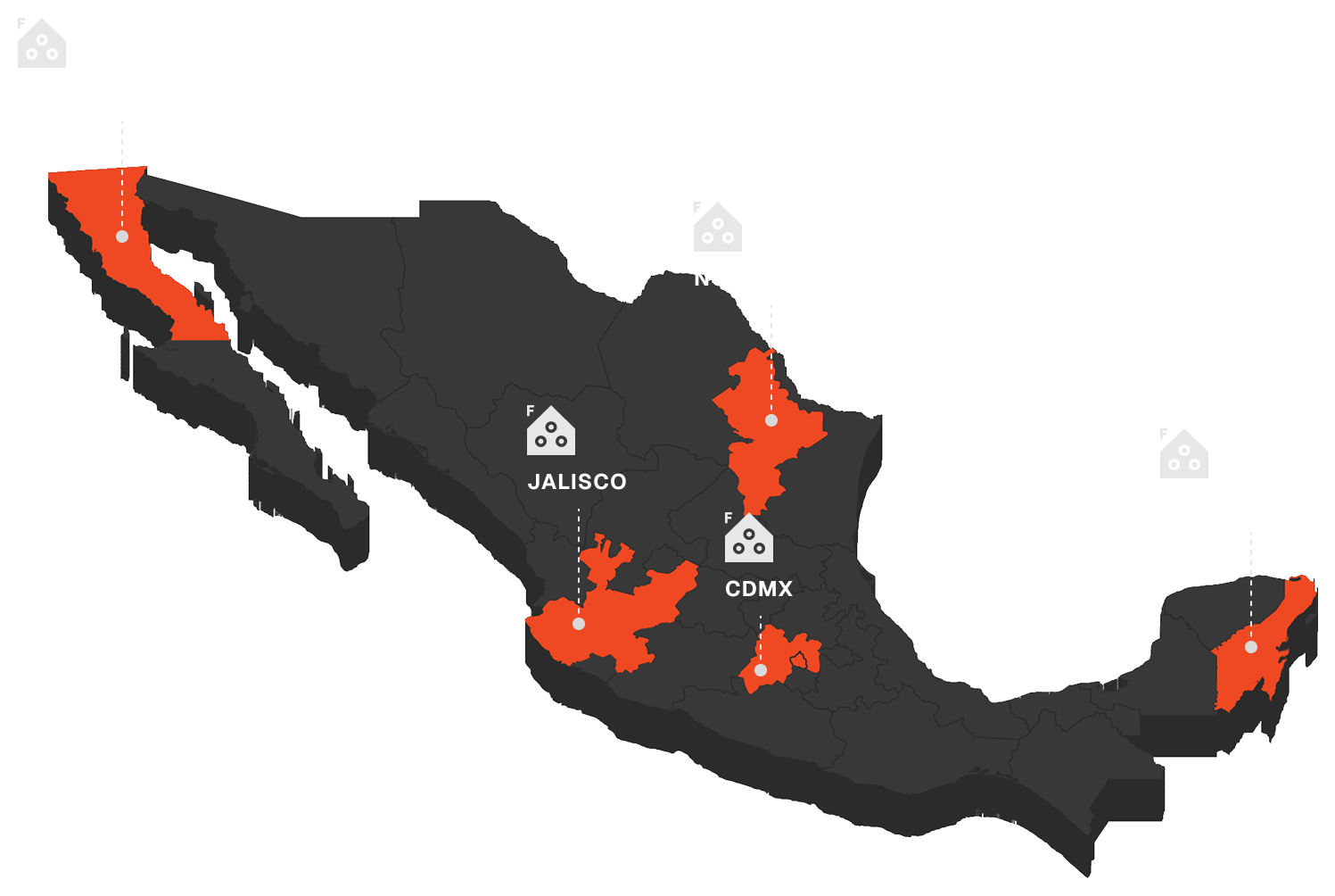 Con inversiones inmobiliarias en Jalisco, CDMX, Baja California y Quintana Roo, seguimos consolidándonos como un desarrollador innovador y líder.